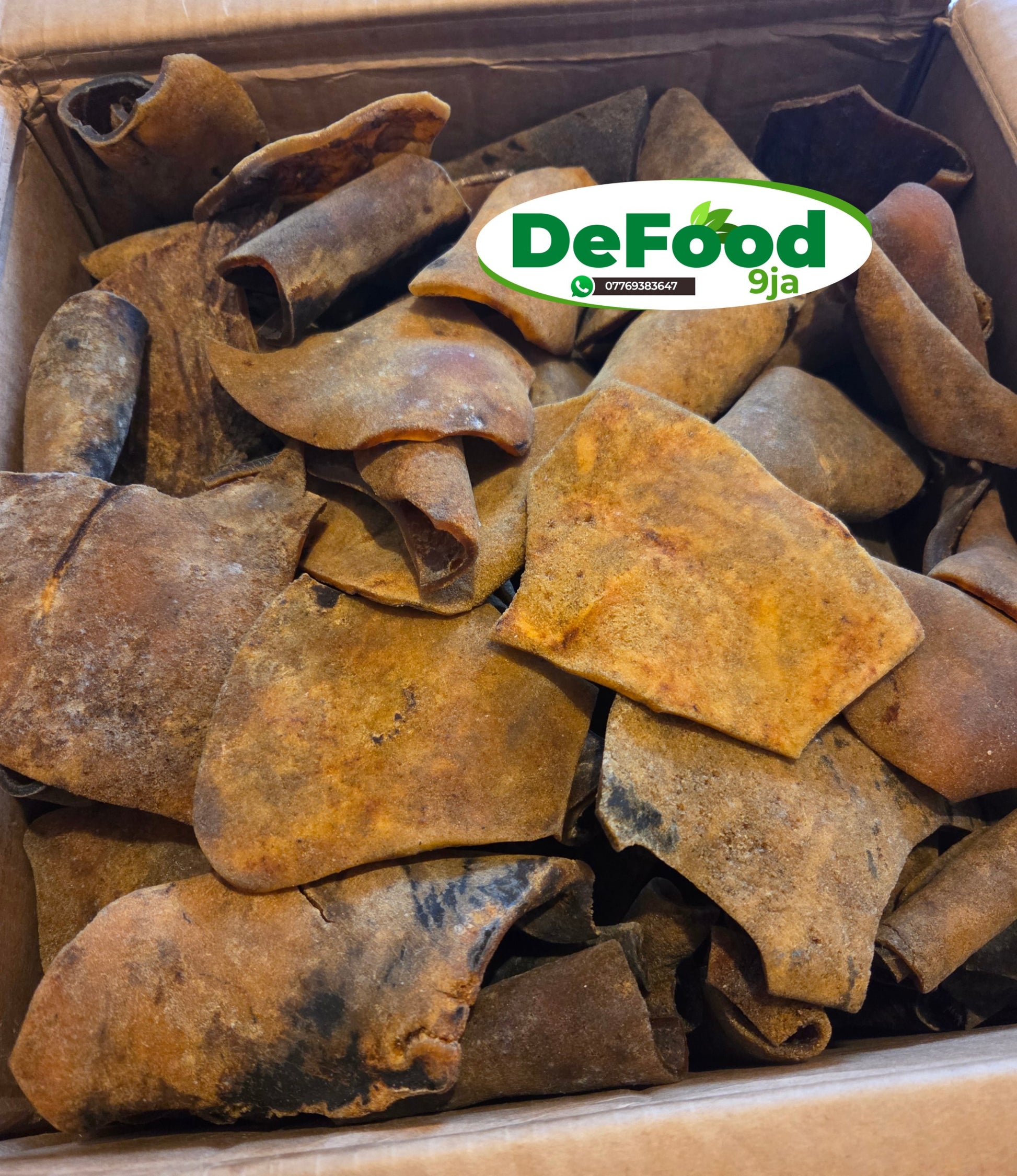 The product is Dried Ponmo Ijebu (cow skin). It is a type of meat made from 100% natural cow skin. This dried meat product is a traditional delicacy perfect for making: Stew, Egusi, Ogbono, Efo Riro e.t.c. It is available in a pack of 250g(5 to 7 pieces) and a pack of 500g(10 to 15 pieces) depending on it size.